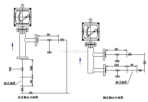 六、防爆型金屬管浮子流量計(jì)安裝形式