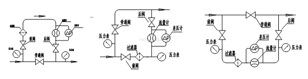 在特殊情況下可采取下進上出或左進右出,但訂貨時需特殊說明,流量計出廠時標準產品為上進下出。安裝流量計時應設置前后閥門和旁通管路,以保證維修保養(yǎng)時,不必停氣。圖6、圖7、圖8分別為A、
