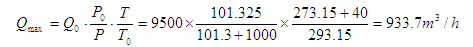 計算:當介質壓力蕞低、溫度蕞高時(估算選型可不考慮天然氣壓縮因子的影響),此時當處于供氣峰期時具有蕞大體積流量,所以有: